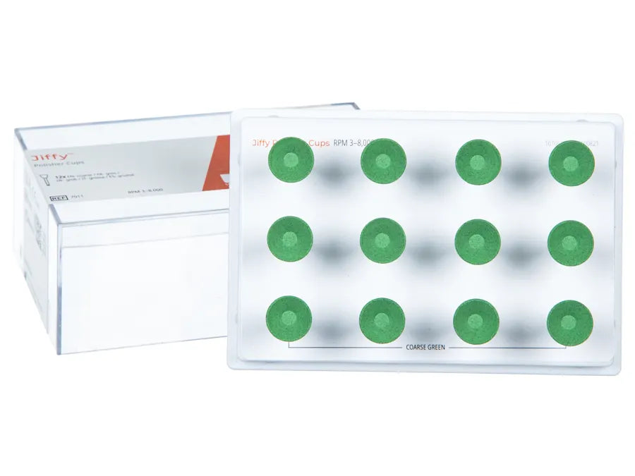 El sistema de pulido Jiffy Original consta de copas, puntas, discos y cepillos de pulido de alta calidad. Los pulidores cuentan con nuestro grano especialmente formulado que brinda un hermoso acabado en cualquier material de resina compuesta y están disponibles en granos grueso, medio y fino para dar forma rápida y completa a cualquier restauración de resina compuesta. Las copas de pulido presentan un diseño acampanado, flexible y de paredes delgadas que es ideal para pulir cerca de la encía. Los pulidores Jiffy HiShine™ con grano ultrafino también están disponibles para proporcionar un acabado extra suave y altamente pulido.