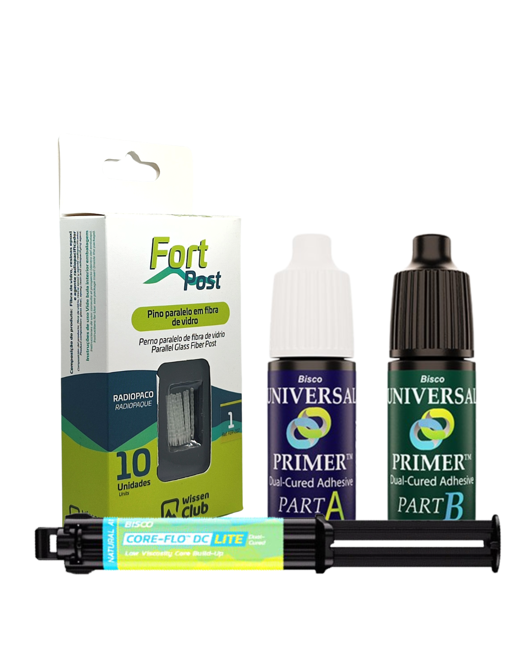 - El kit de introducción CORE-FLO DC Lite está disponible con UNIVERSAL PRIMER™, un adhesivo /primer de curado dual de bajo espesor de película diseñado para el dentista que prefiere no fotopolimerizar la capa adhesiva debajo de las restauraciones indirectas.