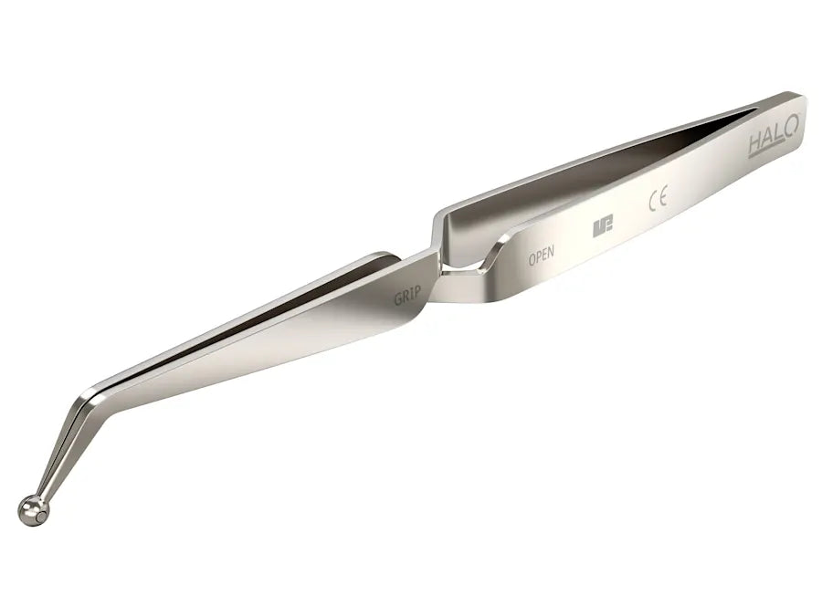Utilice los fórceps Halo para garantizar la máxima estabilidad del anillo Halo durante la colocación. La conexión mecánica positiva de las pinzas Halo garantiza un manejo y agarre seguros durante la colocación y extracción de las bandas y cuñas Halo. Sujete, manipule y coloque de forma segura los anillos, bandas y cuñas de Halo.
