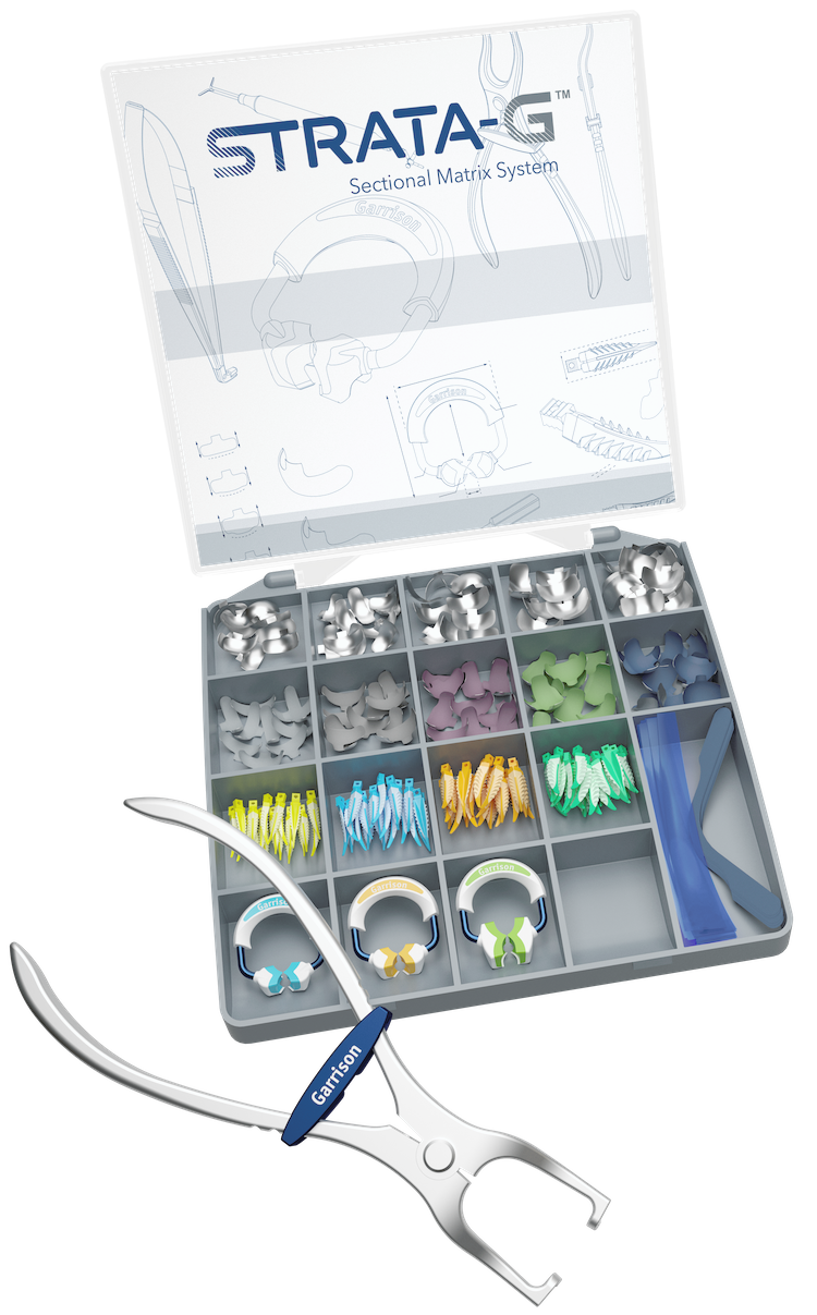 Los nuevos anillos, bandas y cuñas Strata-G™ consiguen resultados inmediatos en las clase II combinando la tecnología Seal™ de 270° para conseguir un sellado periferico total evitando los desbordamietos del composites. Los anillos abrazan la totalidad del diente sin desprendimientos realizando el sellado total. El anillo verde facilitará el trabajo en preparaciones anchas.